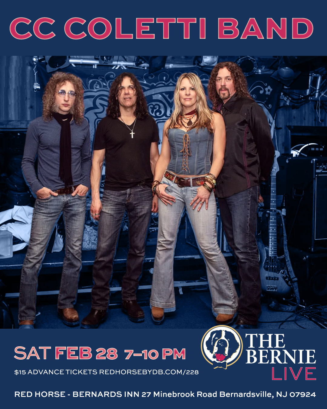 CC Coletti, backing vocalist for Meat Loaf (2003-2010) debuts her classic rock style, covers and originals at The Bernie, with her polished band of Joe Cirotti on guitar, TJ Jablonski on bass and Jamie Tiger on drums. Belting out tunes from Zepplin, Janis, Heart, Allman Bros, Benetar and more, this is a show you dont want to miss. What better to do on a Saturday Night than make that reservation, kick back and listen to your favorite classic tunes! $15 cover, Rock On!